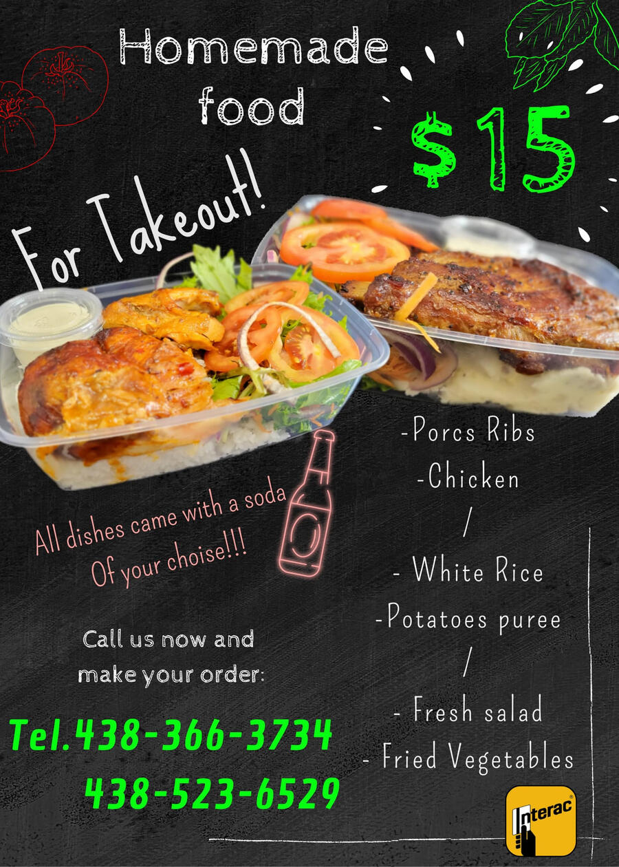 "Welcome to Savourez Chez E&A MTL, where homemade delights meet doorstep delivery. Enjoy authentic dishes made with love right here in Montreal! Additionally, we offer the option to order your meal halal. We're here to tantalize your taste buds and bring a touch of homemade goodness straight to your door. Join us on a culinary journey through the heart of Montreal. Bon appétit!"